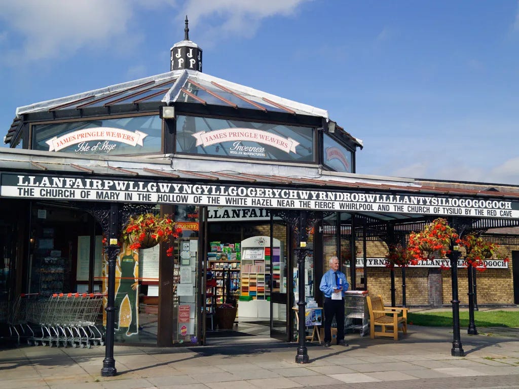 What I love (perhaps, love the most) about Llanfairpwllgwyngyllgogerychwyrndrobwllllantysiliogogogoch is that the name was supposedly extended as a publicity stunt in 1869 to give the station the longest name of any railway station in Britain. To be fair, it was already a long name. An ecclesiastical directory from just before 1869 records the parish name as Llanfairpwllgwyngyllgogerbwlltysiliogogo, with a note that locals almost always shortened it. In 1869 though, they decided long wasn’t long enough and added a few more letters to the mix. The Welsh … am I right?